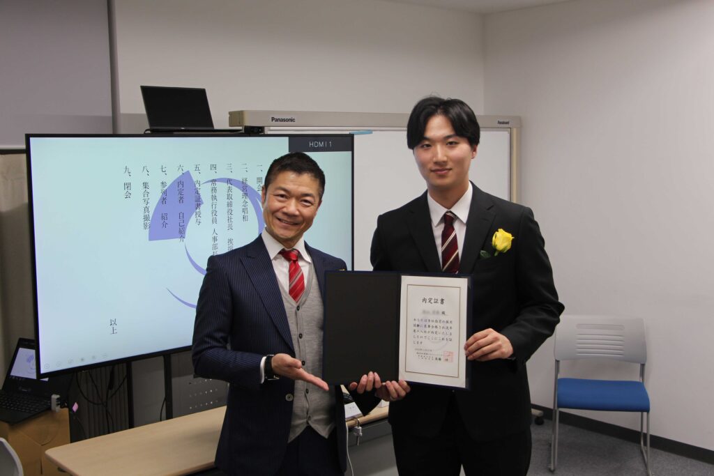 2025年11月27日、東京支店にて2026年入社新卒採用の「内定式」を執り行いました。